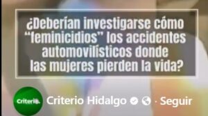 Por Dave Harris En un reciente video publicado por Criterio Hidalgo, Diana Avilés Quesada, miembro del Consejo Directivo de ESA INAC, planteó una propuesta que merece un análisis serio y respetuoso: investigar los accidentes automovilísticos mortales donde fallecen mujeres, así como los suicidios femeninos, bajo el protocolo de feminicidio. Con todo el respeto que merecen […]