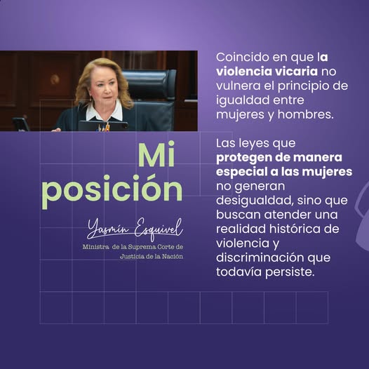 "Coincido en que la violencia vicaria no vulnera el principio de igualdad entre mujeres y hombres. Las leyes que protegen de manera especial a las mujeres no generan desigualdad, sino que buscan atender una realidad histórica de violencia y discriminación que todavía persiste."